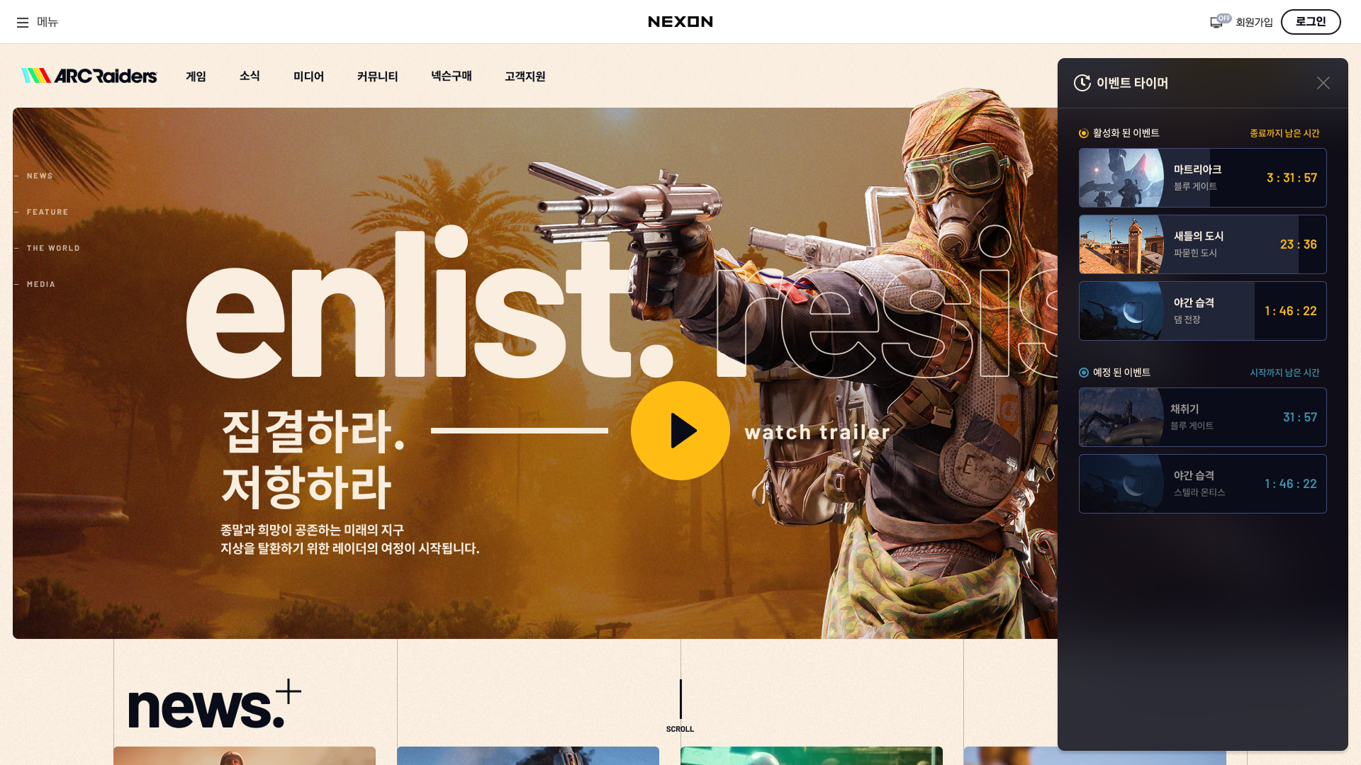 - 공식 홈페이지 우측에 위치한 플로팅 버튼을 통해 언제든지 이벤트 타이머를 확인하세요.